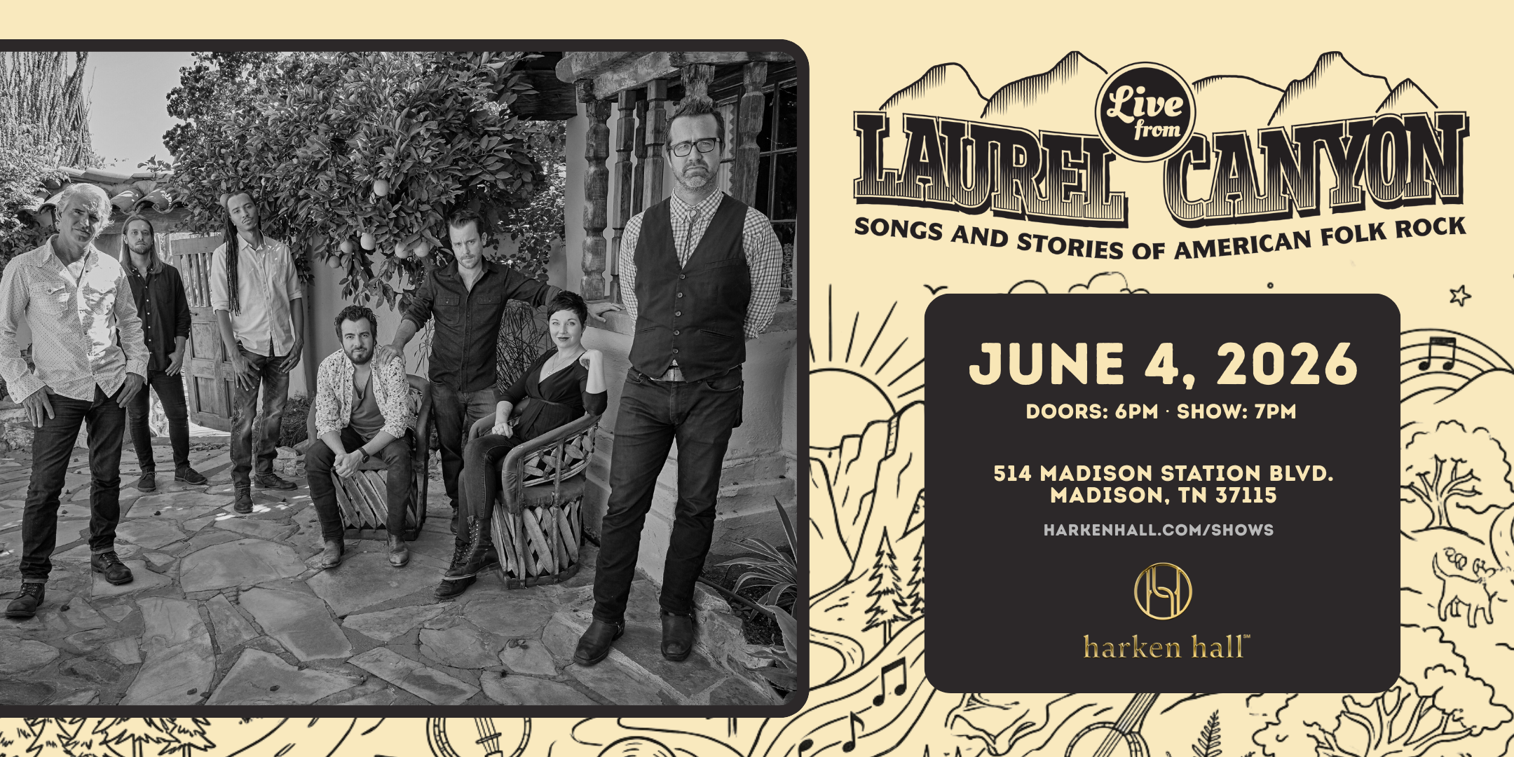 Harken Hall announces Live from Laurel Canyon: Songs & Stories of American Folk Rock set for June 4 at 7 p.m. This show brings the legendary music of 1960s and 70s from Laurel Canyon to life through a powerful evening of live performance, storytelling, and immersive video projections.